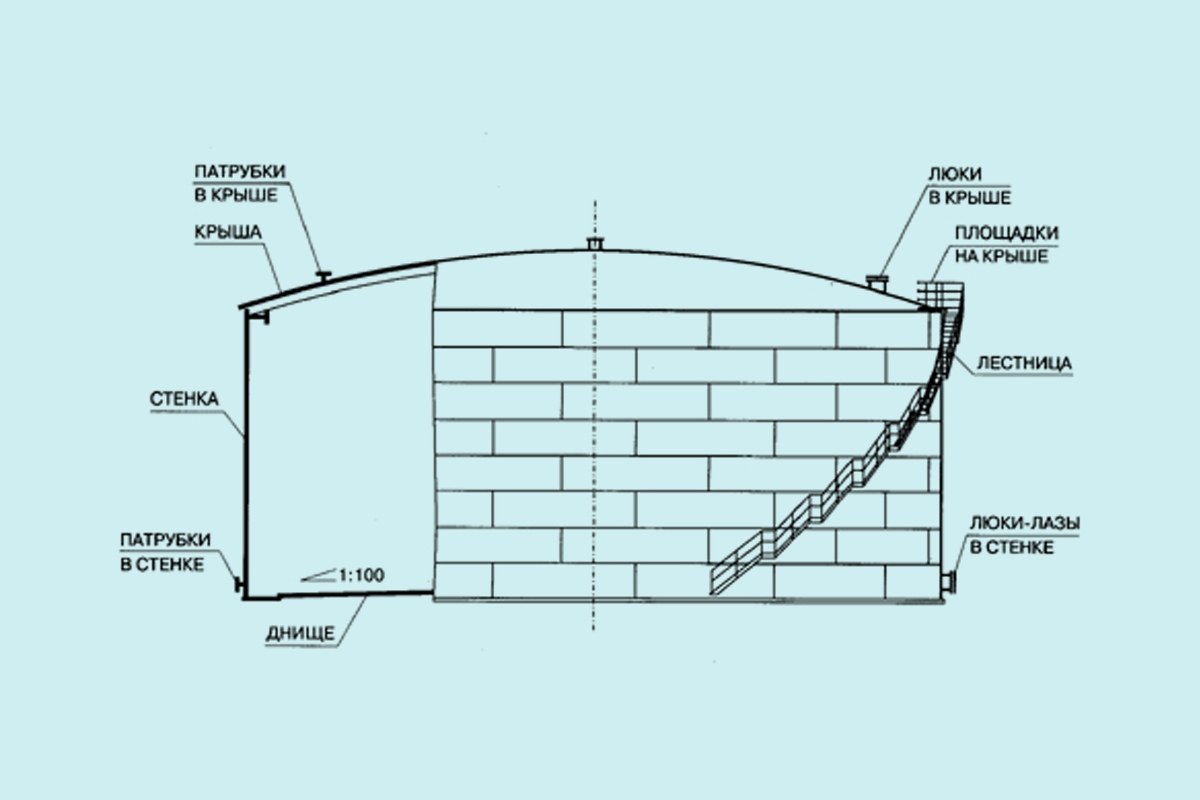 Производитель предлагает полное внедрение резервуаров, либо участие на различных этапах. Сама емкость представляет собой вертикальную цилиндрическую конструкцию, которая нуждается во вспомогательном оснащении для качественной эксплуатации в различных отраслях: